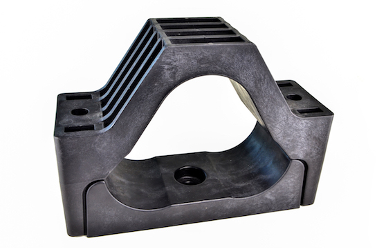 Polyamide noir (PA66), renforcé de fibres de verre, matériau vierge.